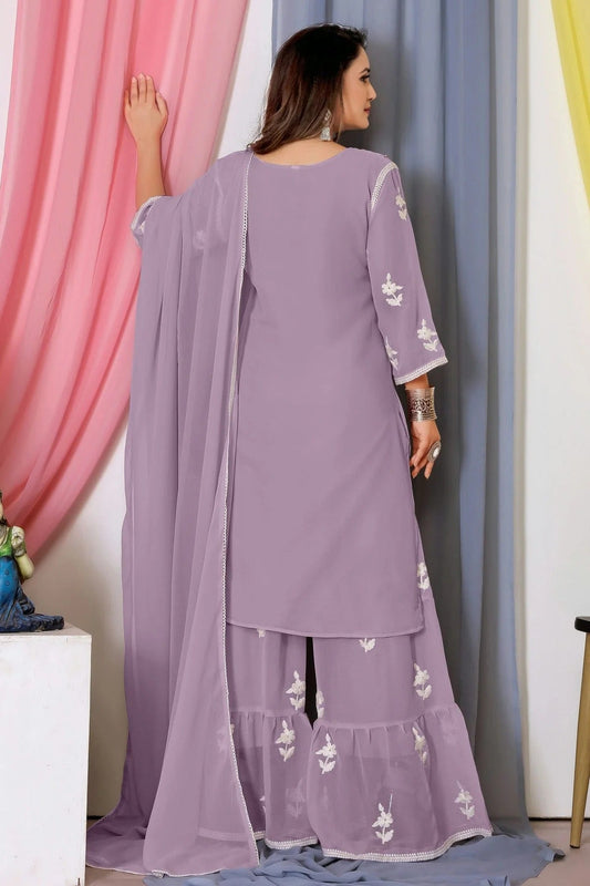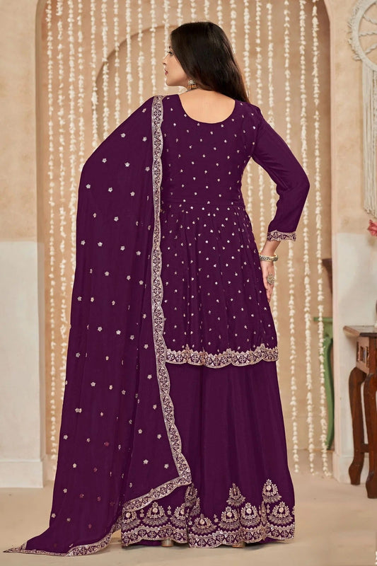 Purple Colour Faux Georgette Sharara Suit SM1050553