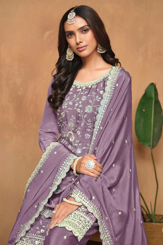 Purple Colour Chinon Palazzo Pant Suit SM1050581