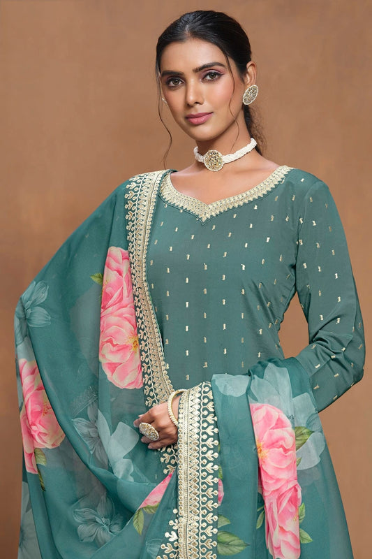 Teal Colour Faux Georgette Sharara Suit SM1050554