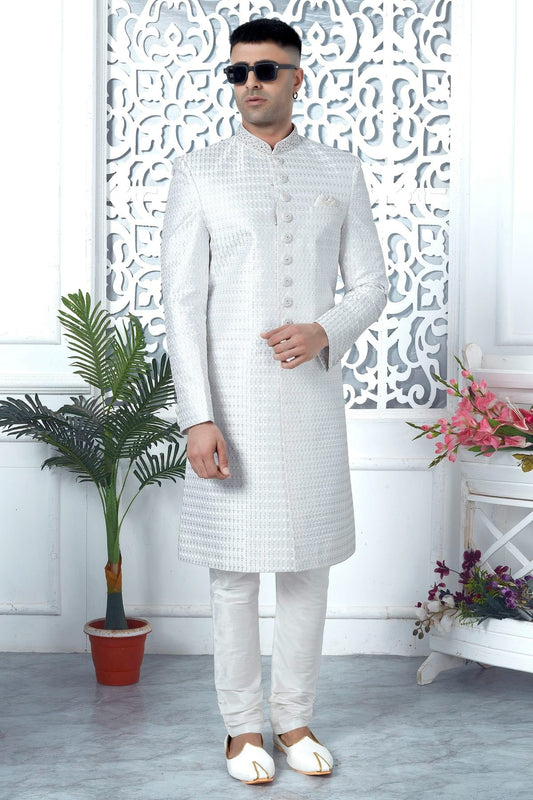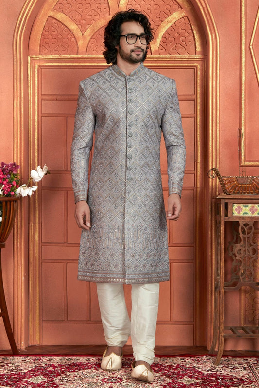 Light Grey Colour Art Silk Sherwani With Churidar Pant SH1230052