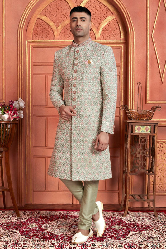 Light Green Colour Art Silk Sherwani With Churidar Pant SH1230047
