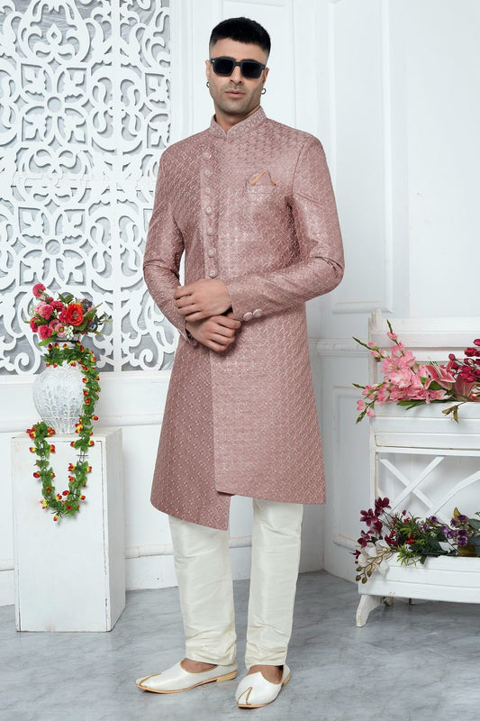 Onion Pink Colour Art Silk Sherwani With Churidar Pant SH1230053