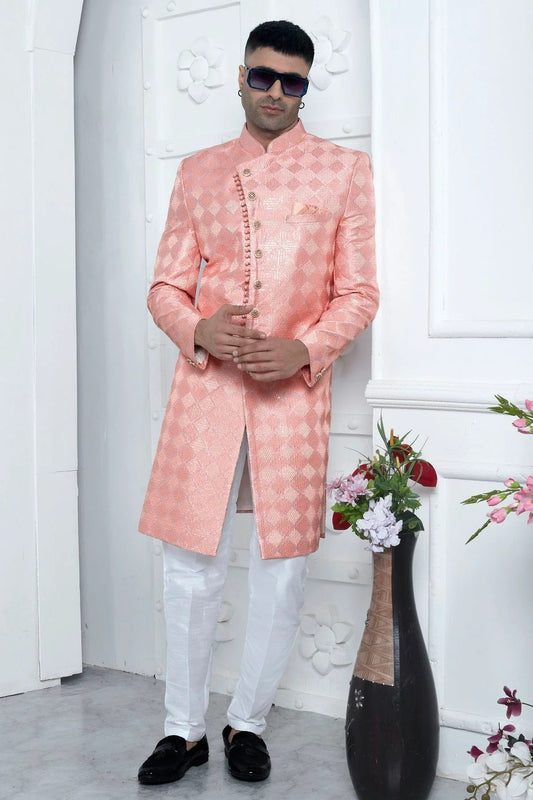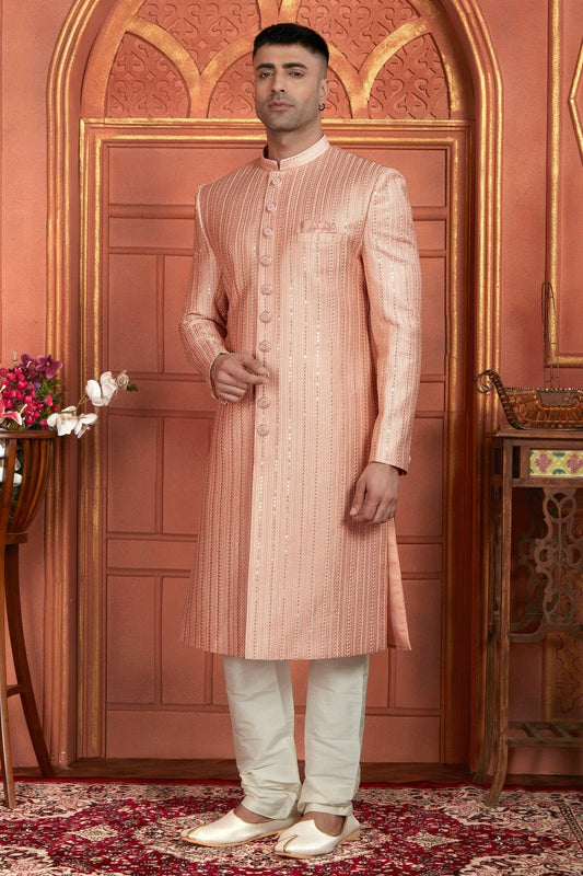 Peach Colour Art Silk Sherwani With Churidar Pant SH1230051
