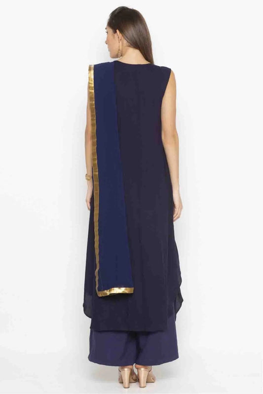 Navy Blue Colour Plus Size Georgette Embroidery Pant Style Suit SS1070308
