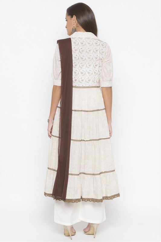 Cream Colour Plus Size Stitched Cotton Embroidery Palazzo Pant Suit SS1070289