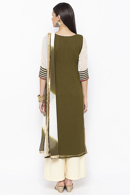 Green and White Colour Plus Size Georgette Embroidery Palazzo Pant Suit SS1070300