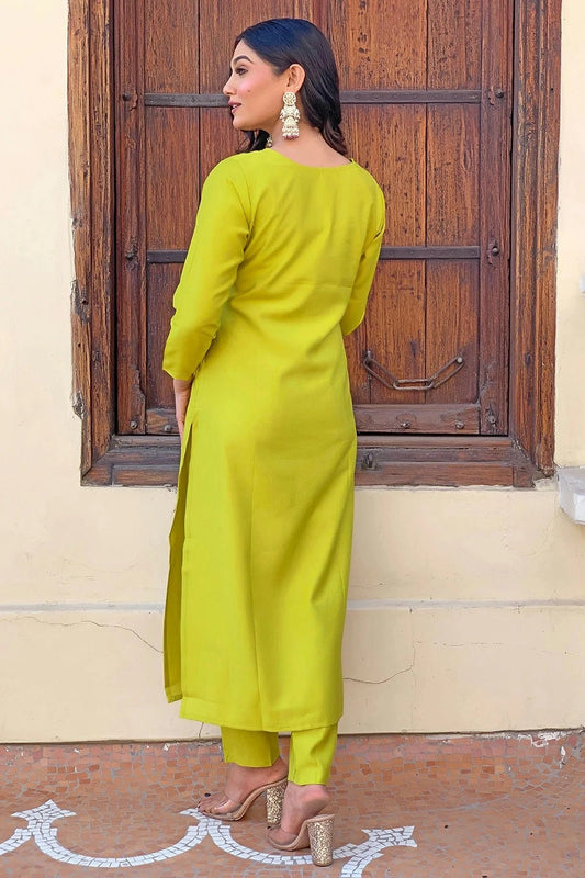 Lime Green Colour Rayon Stitched Salwar Suit SS1112033