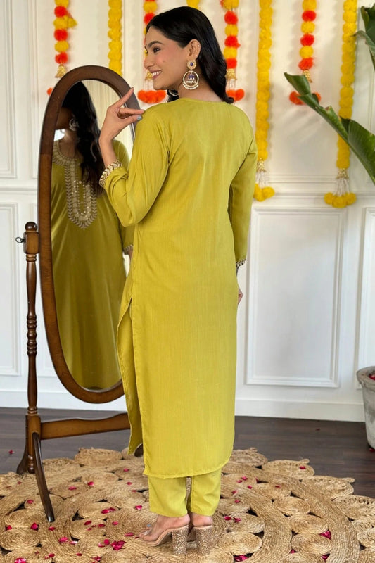 Lime Green Colour Viscose Chanderi Stitched Salwar Suit SS1111555