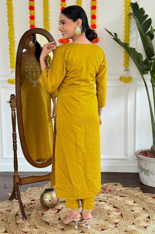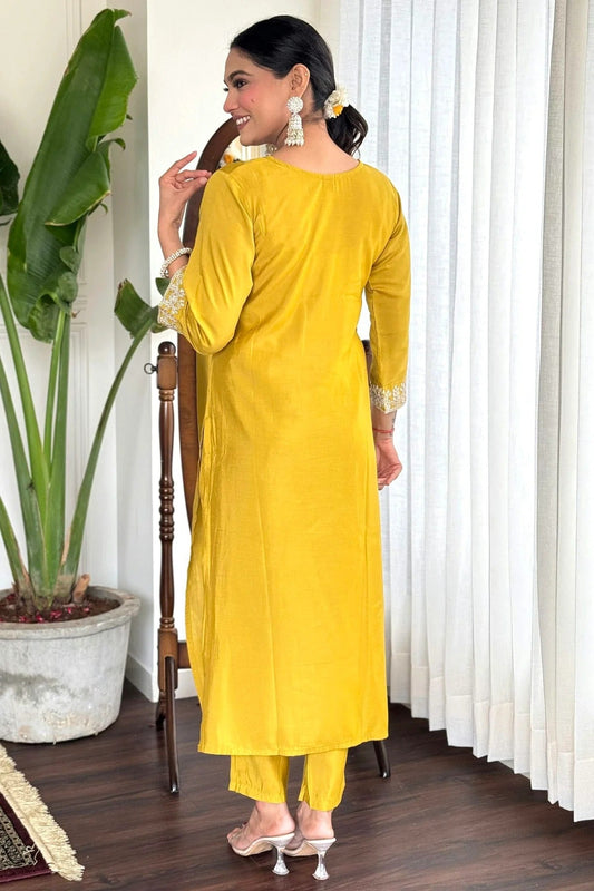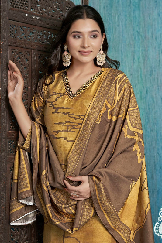 Mustard Colour Viscose Chanderi Stitched Salwar Suit SS1112022