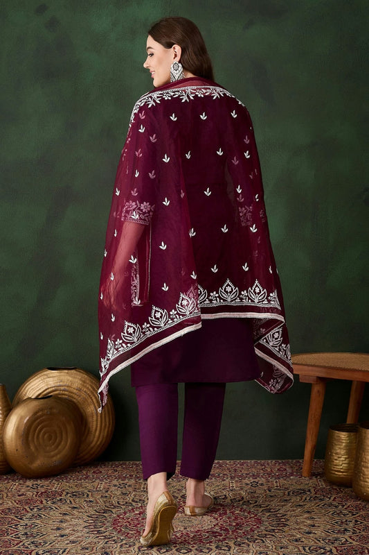 Maroon Colour Chinon Stitched Suit SS1112231