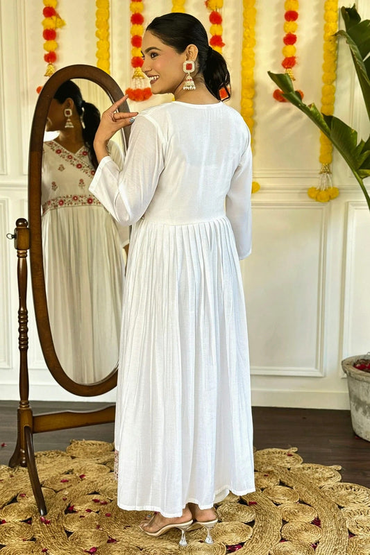 White Colour Chanderi Viscose Stitched Salwar Suit SS1111961
