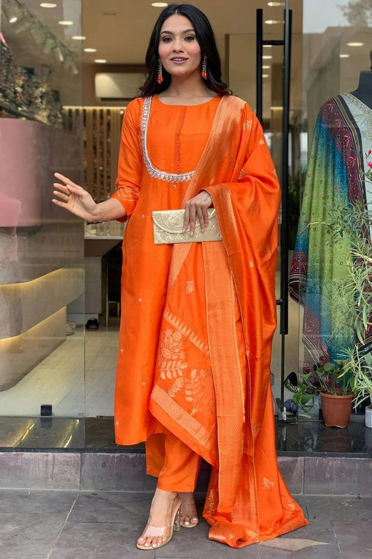Orange Colour Viscose Chanderi Stitched Salwar Suit SS1111552