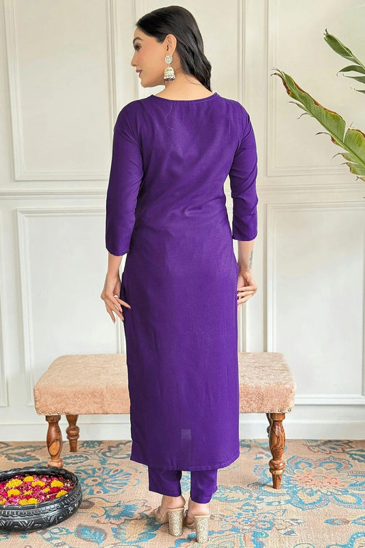 Purple Colour Viscose Rayon Stitched Salwar Suit SS1111962