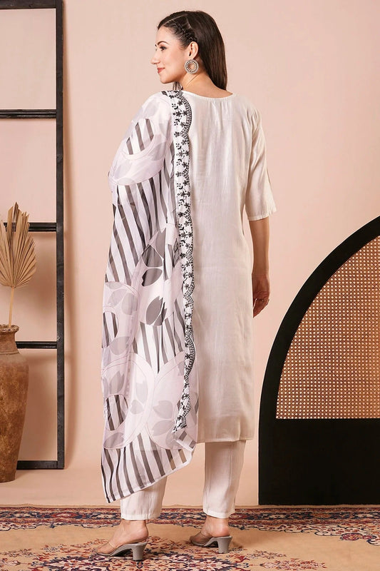 Off White Colour Viscose Chanderi Stitched Salwar Suit SS1112024
