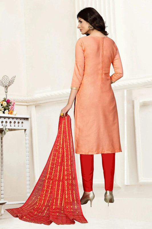 Peach Colour Unstitched Cotton Straight Suit US1160662