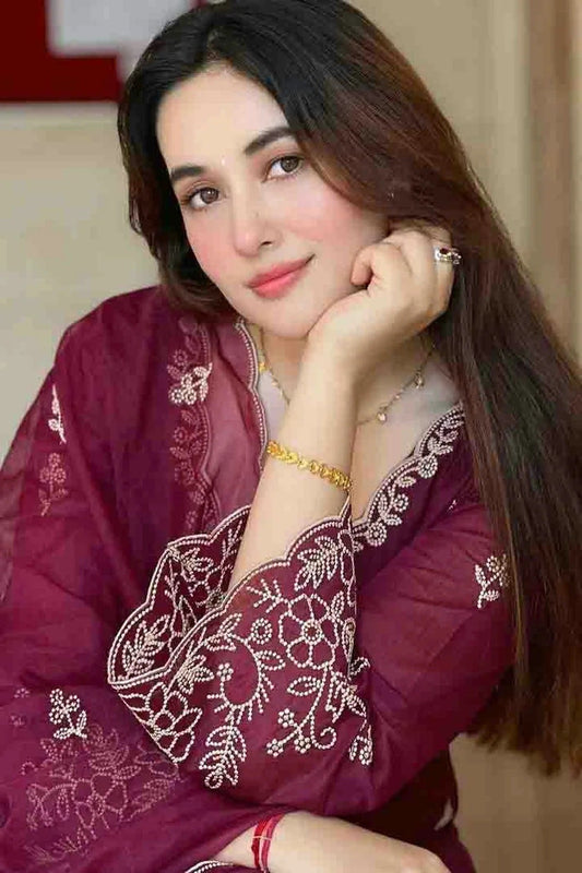 Wine Colour Embroidery Viscose Silk Pant Style Suit SS1113490