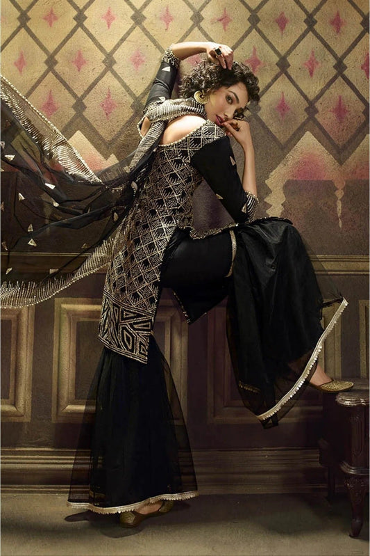 Black Colour Net Sequins Work Sharara Suit SM1080644