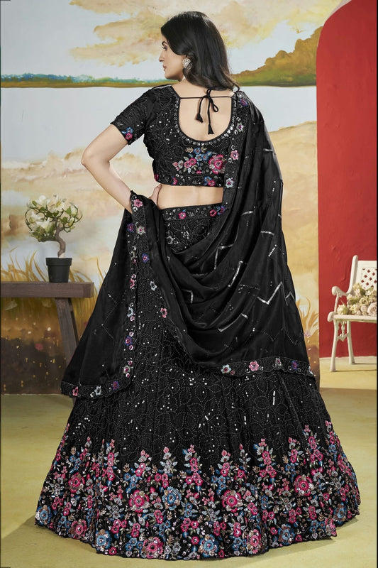 Black Colour Semi Stitched Chinon Lehenga Choli LC1112521