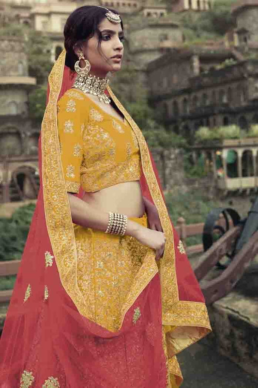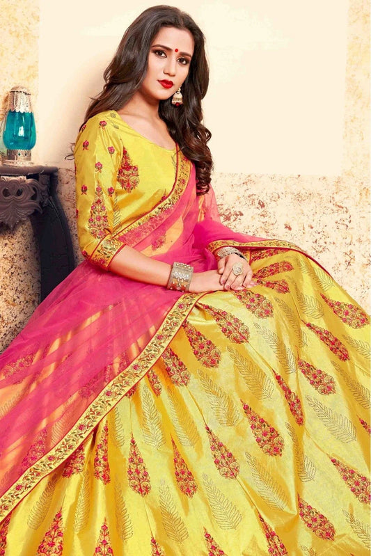 Yellow Colour Satin Embroidery Lehenga Choli LC1080205