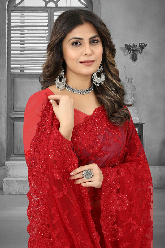 49% OFFRed Colour Net Saree SD1090843